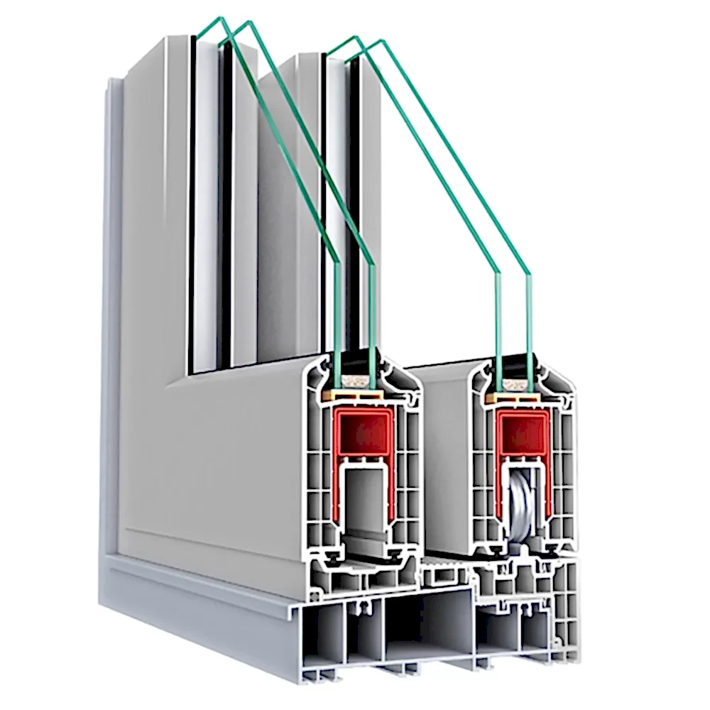- Kapı Kanat profili 70 mm genişliğinde ve 5 odacıklı, maksimum ses, ısı yalıtımı sağlamak için 20, 24, 28, 34, 40 mm aralığındaki nitelikli camlarla birlikte kullanılması mümkündür.